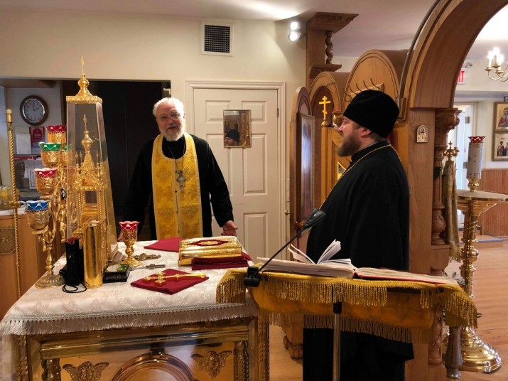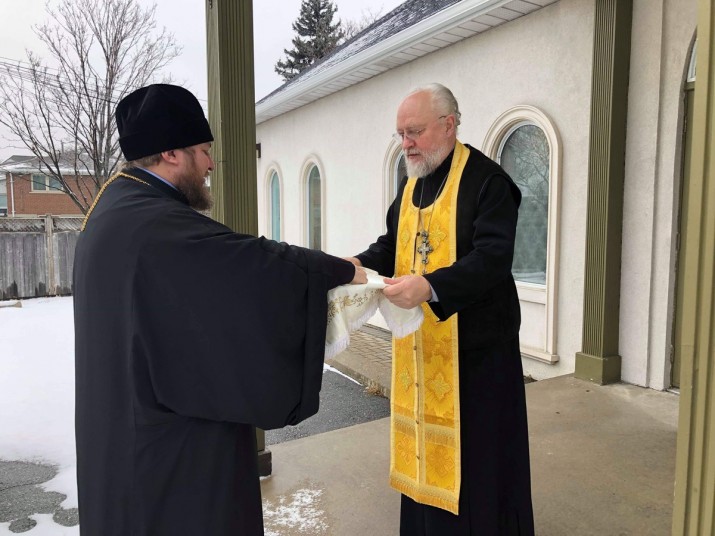 Преосвященного Владыку встретил настоятель храма протоиерей Сергий Рассказовский, который ознакомил Владыку Матфея с устройством храма, рассказал об истории возникновения прихода и сегодняшней жизни общины Русской Православной Церкви в Торонто.